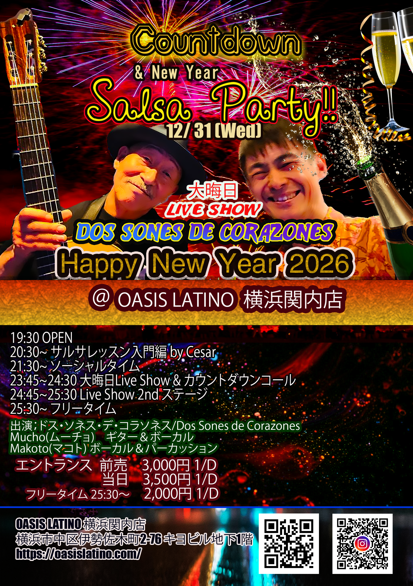 2025年 12月 31日 19:30 OPENカウントダウン&ニューイヤーサルサパーティ2025-2026 出演: Dos Sones de Corazonesドス・ソネス・デ・コラソネスMucho(ムーチョ) […]